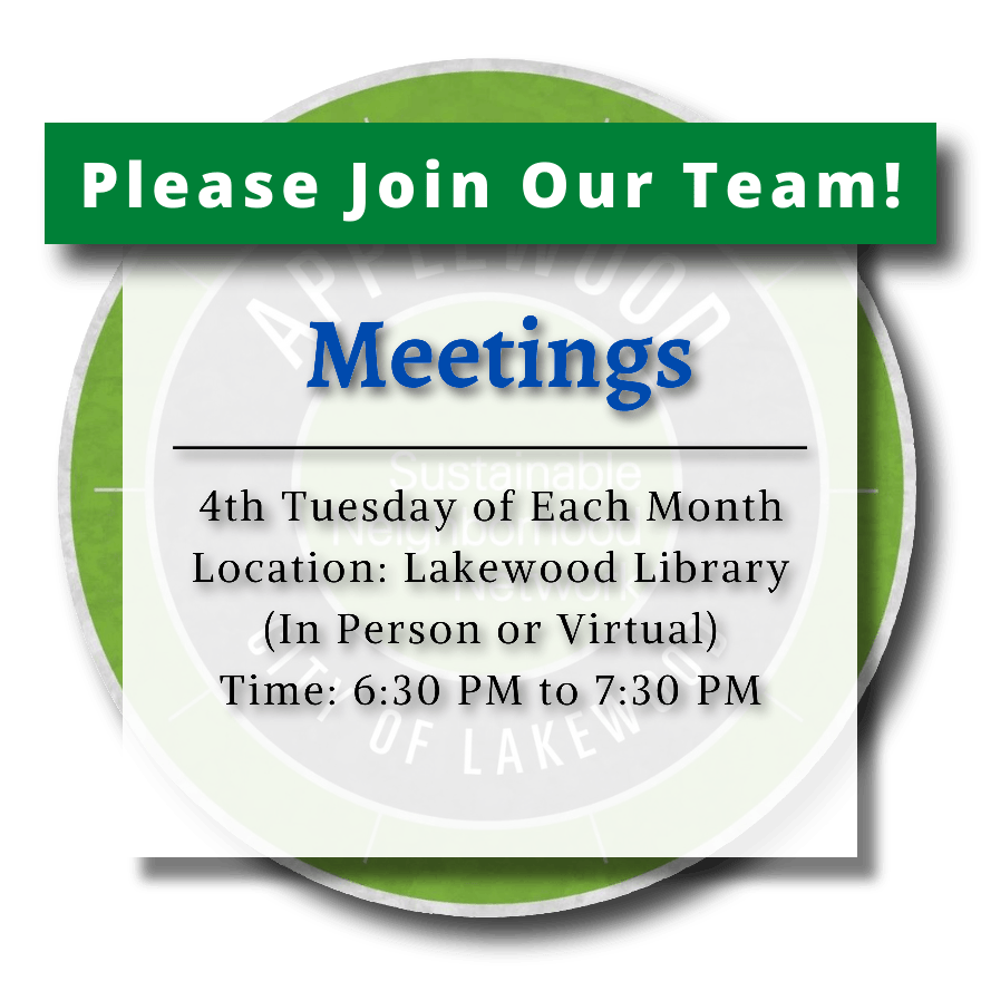 We love new ideas! Contact us and join a meeting. Even if you just want to listen in and learn about our process, we welcome you to be with us. All meetings are held at the Lakewood Library at this time.